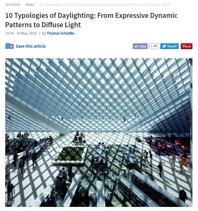On May 18, the work of Siobhan Rockcastle and Marilyne Andersen was featured in an Archdaily article titled, “10 Typologies of Daylighting: From Expressive Dynamic Patterns to Diffuse Light,” written by Thomas Schielke. A link to the article can be found here.