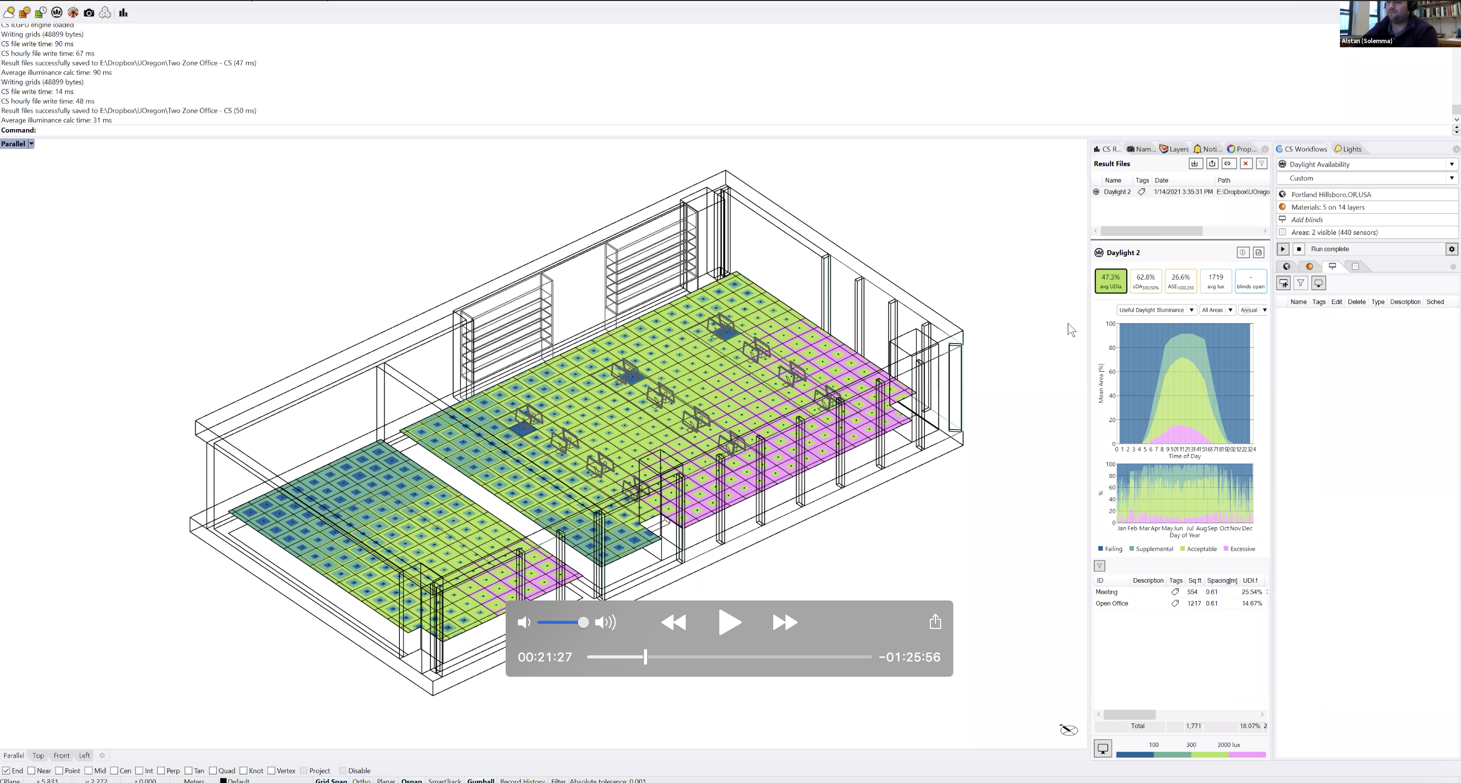 As part of our advanced technical elective on Building Simulation & Visualization at the University of Oregon, we’ve invited a series of guest presenters to share their tools, research, and professional work. This week’s guest presenter is Alstan Jakubiec from Solemma and the University of Toronto. For access to a free student license of Climate Studio, contact the faculty ambassador at your school (Siobhan Rockcastle at U of O) or purchase a professional license via the Solemma website.