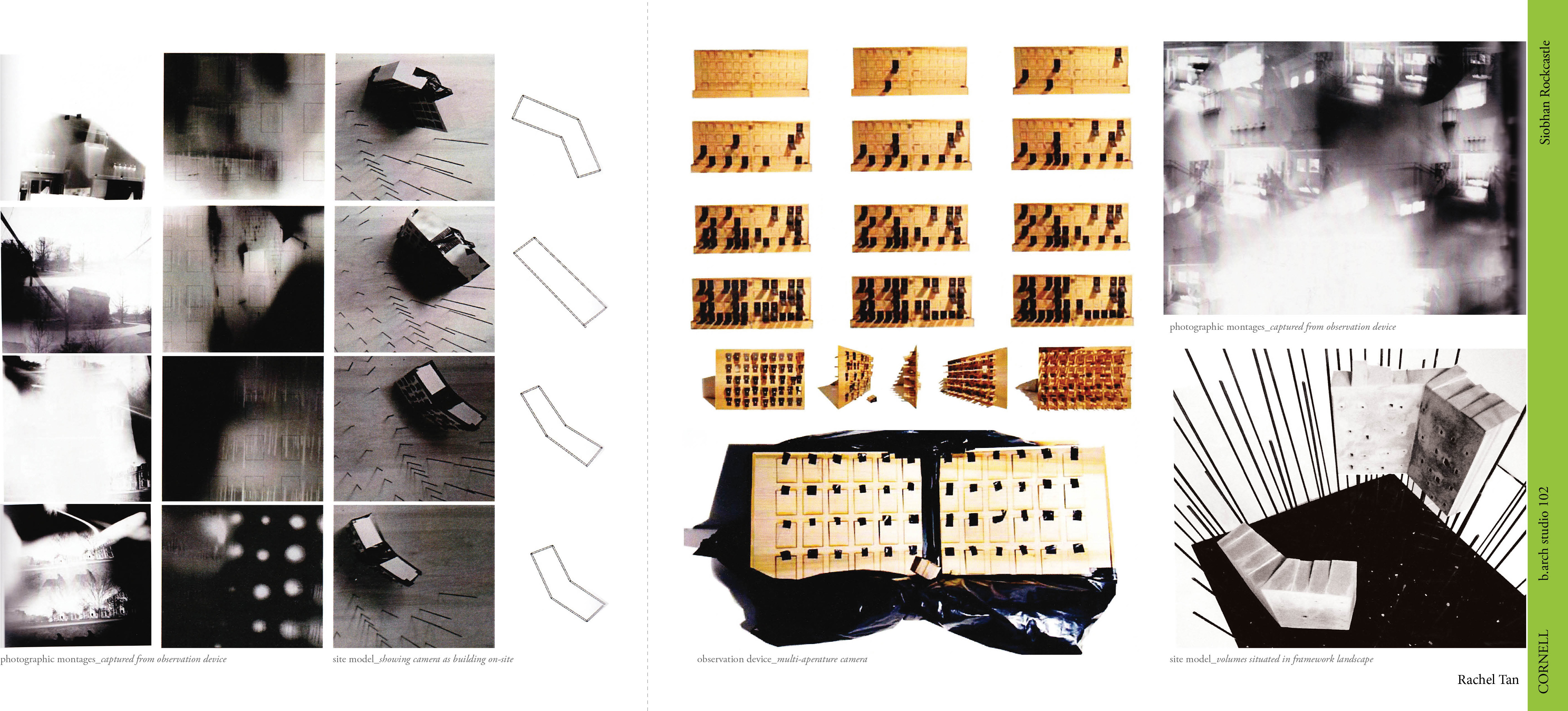 This second semester of the frst year studio sequence began with the design of an object for documentation. This object, left intentionally ambiguous in definition, allowed the students to explore the role of tools in collecting, recording, framing, measuring, and guiding the exploration of their surroundings.