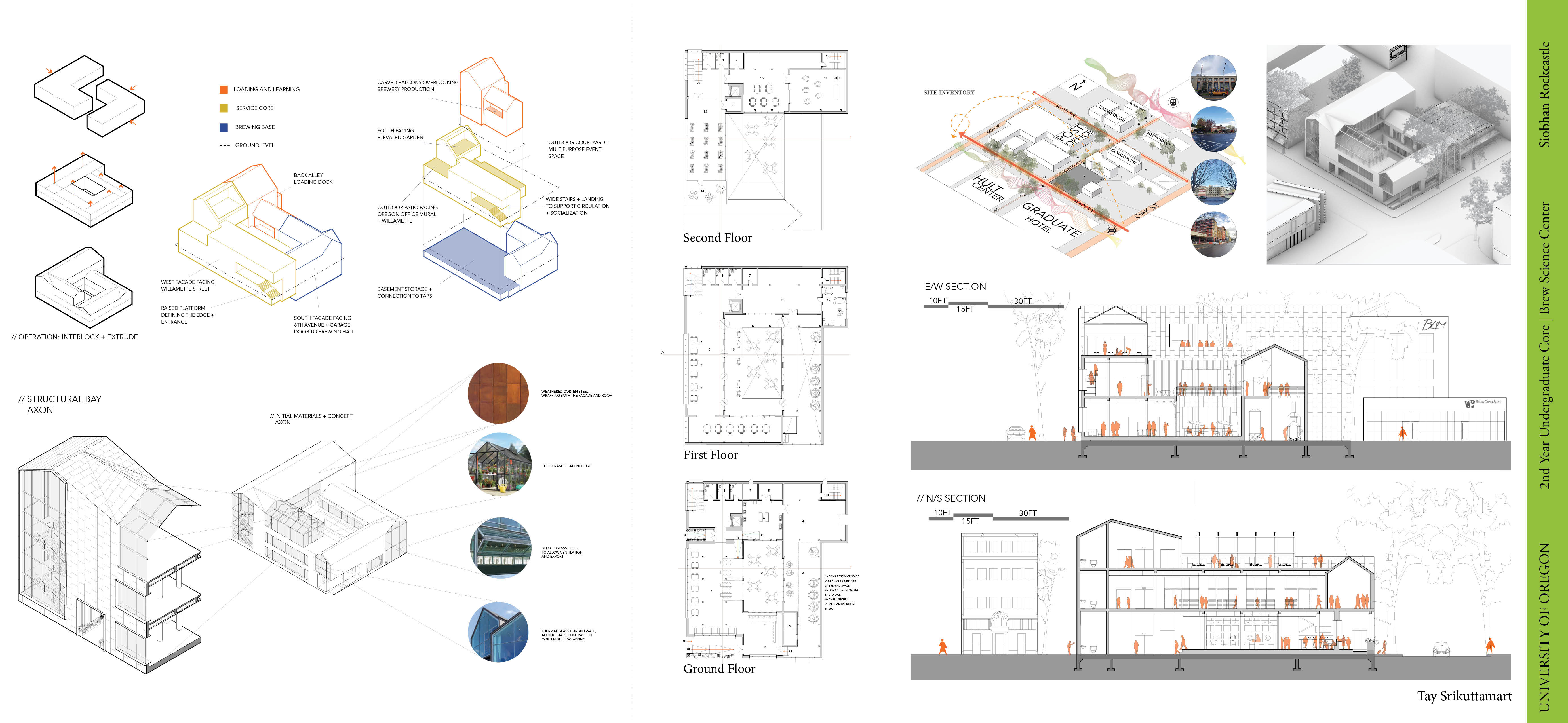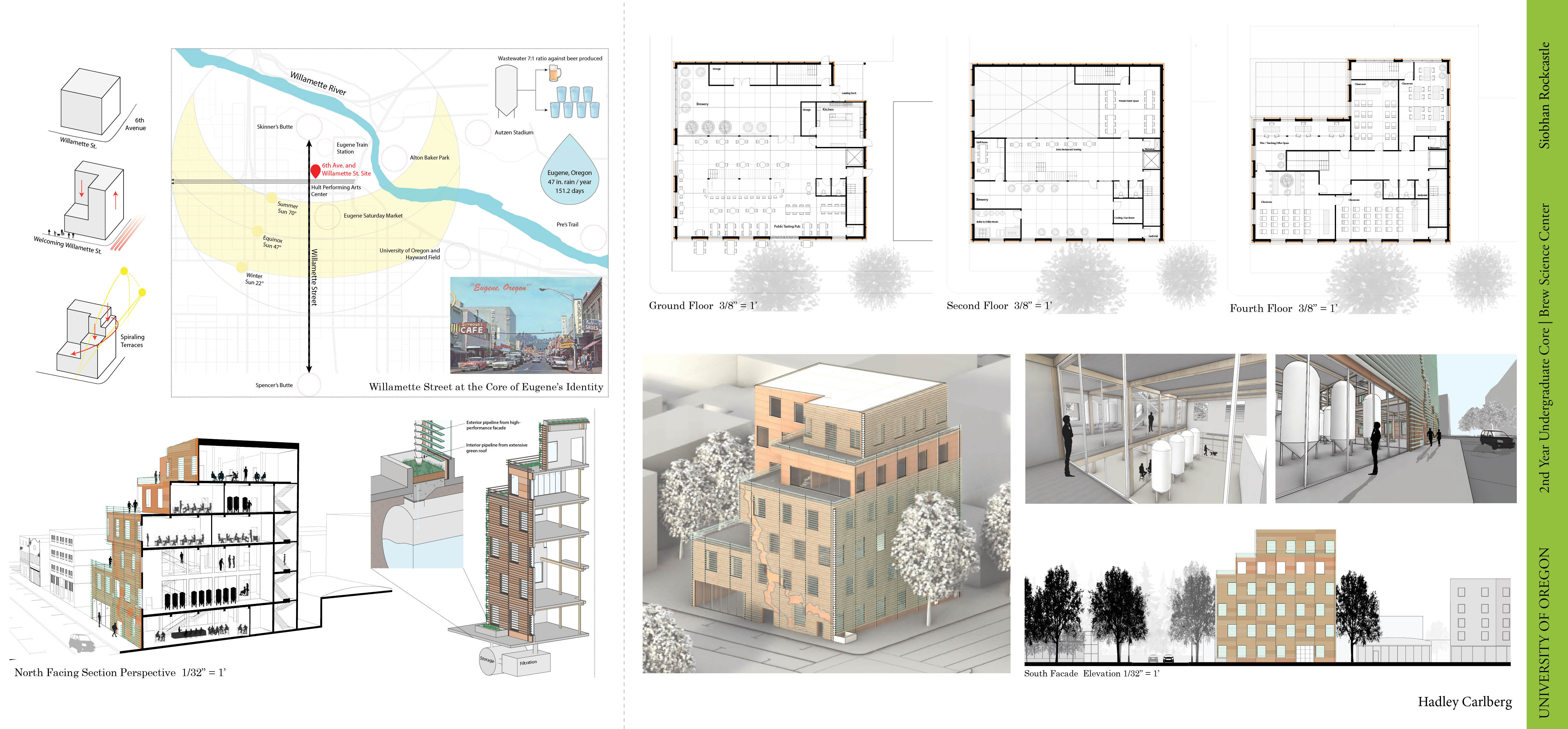 Despite this expansion in the local industry and job market, there are limited options for pursuing training in the science and business of brewing. There are a growing number of undergraduate, graduate, and certificate programs offering education in this field across the United States, but only a handful of these programs exist in the state of Oregon. To meet the growth in our regional job market, this studio proposes a new Center affiliated with the University of Oregon College of Business and the Lane Community College School of Culinary Arts and Hotel/Restaurant/Tourism Management.